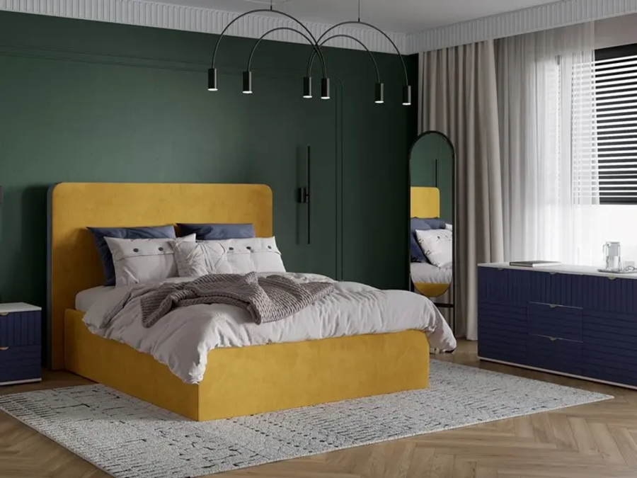 Увеличенная высота подчёркивает объём и делает силуэт более солидным. Мягкая обивка смягчает очертания, благодаря чему большая кровать не выглядит тяжёлой и гармонично вписывается в интерьер.